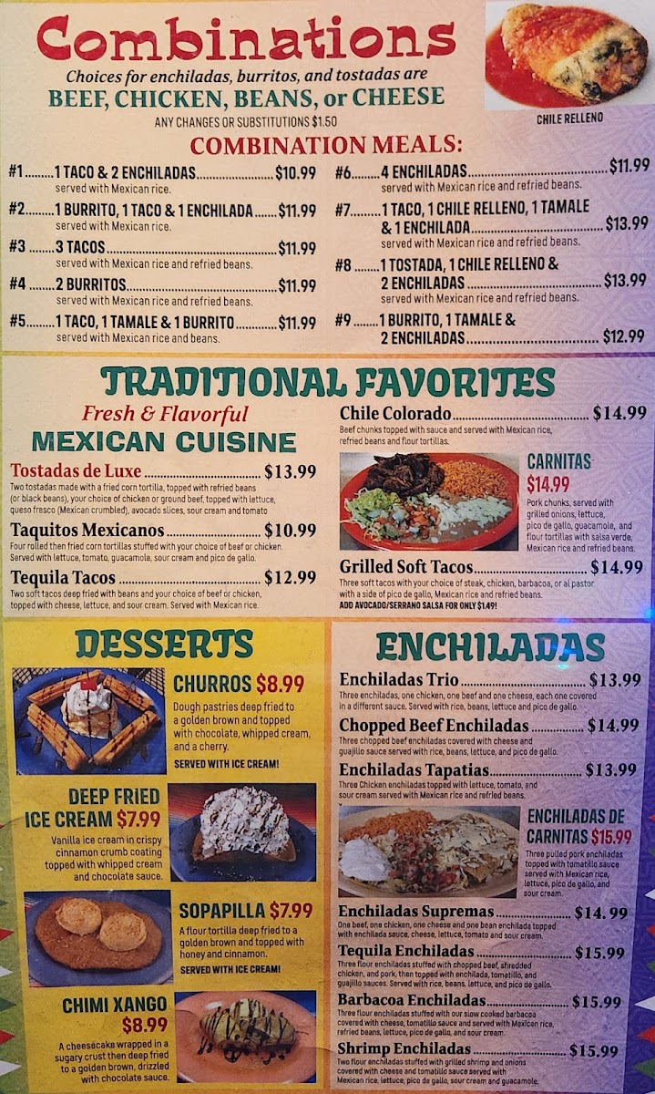 The menu at Tequila Mexican Restaurant offers a relaxed, casual dining experience with a focus on familiar Mexican favorites done right. From hearty combination plates and flavorful tacos to shareable appetizers like nachos and chips with salsa, the selection fits well for everything from quick lunches to comfortable dinners with friends or family.